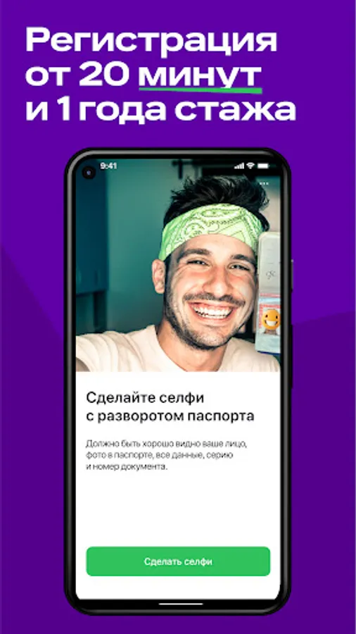 2. Зарегистрируйтесь с паспортом, действующим водительским удостоверением и банковской картой. Минимальный стаж вождения — 1 год, а возраст — 20 лет.