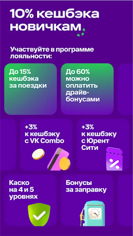 Чем больше проедете — тем выше уровень. Чем выше уровень — тем больше кешбэка за каршеринг можно получать и тратить.