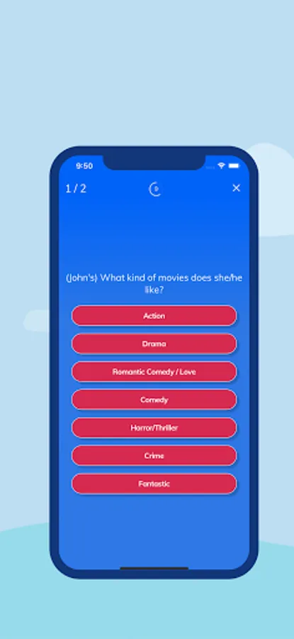 Each test is asked 15 different questions, and the result of the test is a graph showing how well you know each other.
