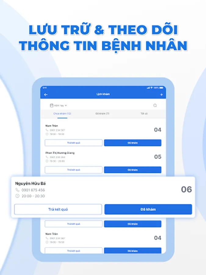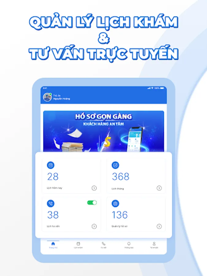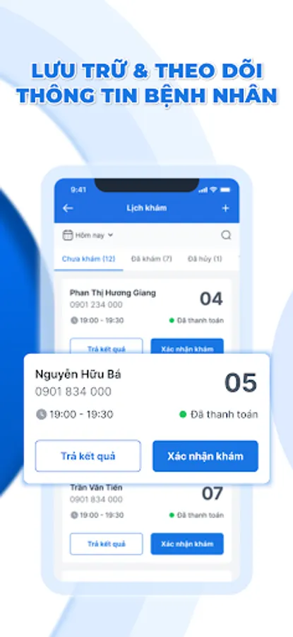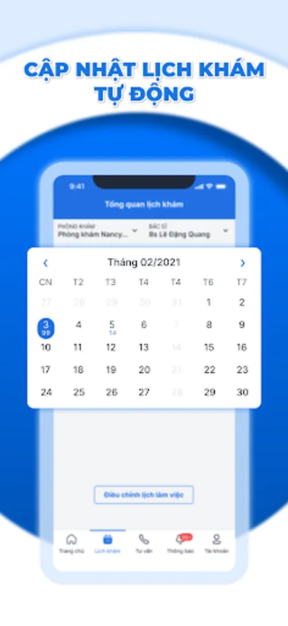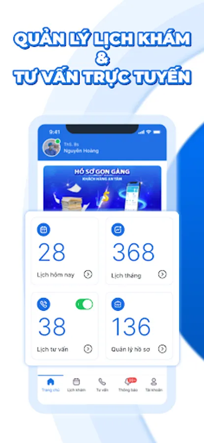 Actively manage the appointment schedule: with the goal of minimizing cumbersome procedures, the doctor can actively manage the appointment schedule right at the application. The schedule is always visually displayed on the phone screen, the doctor can check the schedule by day, week, month or at any time.
