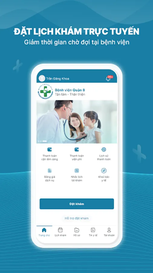 The official application of BV 8 makes it easy for people to register for online medical check-ups by hour, reducing waiting time at the hospital. Now, with the application of District 8 Hospital, people can: Register for online check-ups by hour, store history of their own or relatives, review details of Dinh's medical itinerary, make online payment conveniently. , receive notification of medical examination or re-examination from the hospital, update health articles from a team of specialists / regular doctors ... All procedures are done online, helping people reduce waiting time at Hospital.