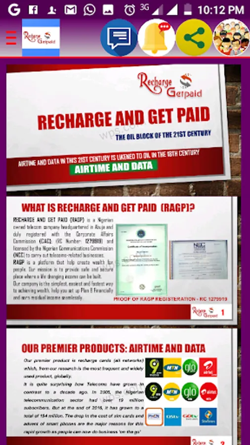 We are young wealth creation in partnership with recharge and get paid telecom industry in Nigeria.