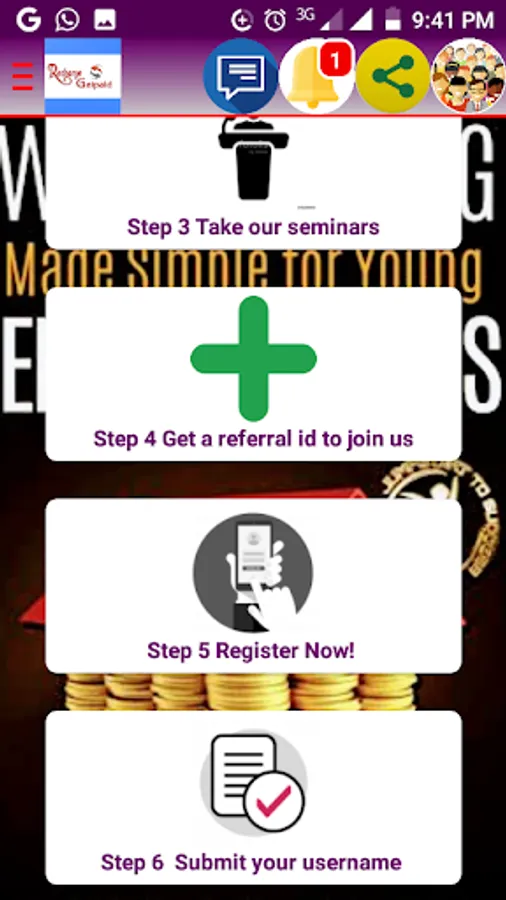 *After your registration submit your username to us (we will give others your username as their referral id to register as well)