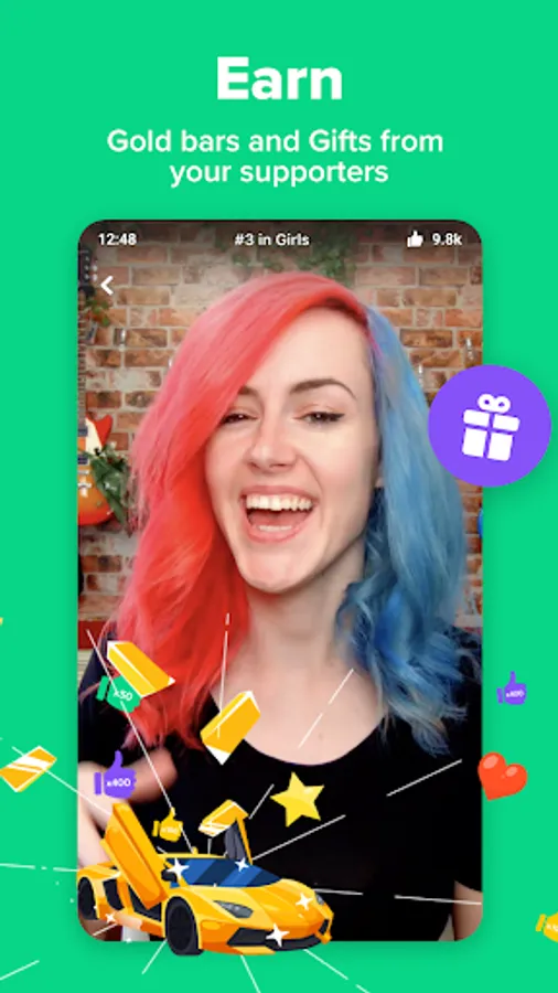 EARN: Receive support from friends and fans in the form of gold bars, pearls, chat stickers, and much more.
