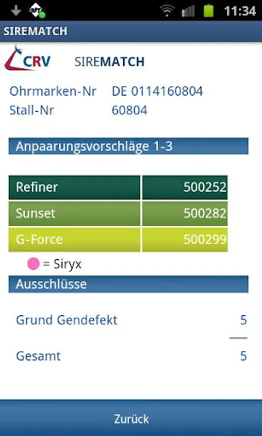 This is the app for Anpaarungsprogramm "SireMatch". It allows you to use your mobile individual Anpaarungsergebnisses. So you can always and everywhere access all Anpaarungsempfehlungen your animals. Save yourself having to search through lists and unnecessary travel. So this app is the perfect complement to the service by SireMatch. Incidentally, you can use the same app on different smart phones, so that eg also gives your staff anytime in the picture.