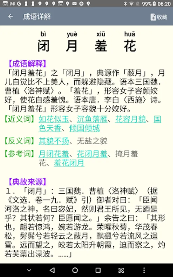 2. Idiom stories: more than 3,000 idiom stories are included. The historical stories behind the idioms all contain moral education or cautionary wisdom.