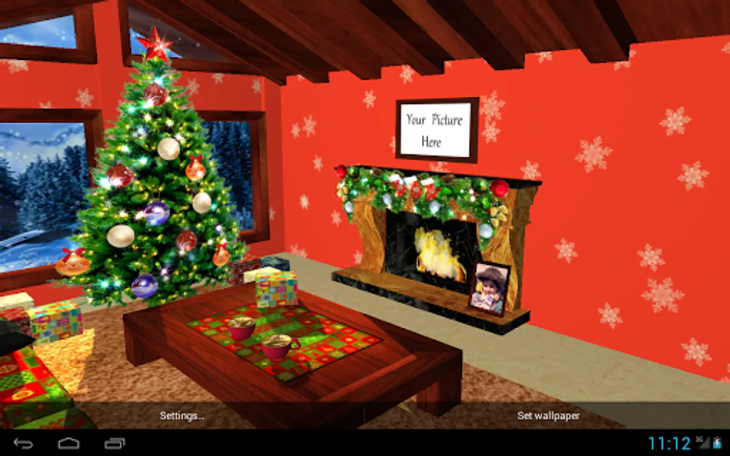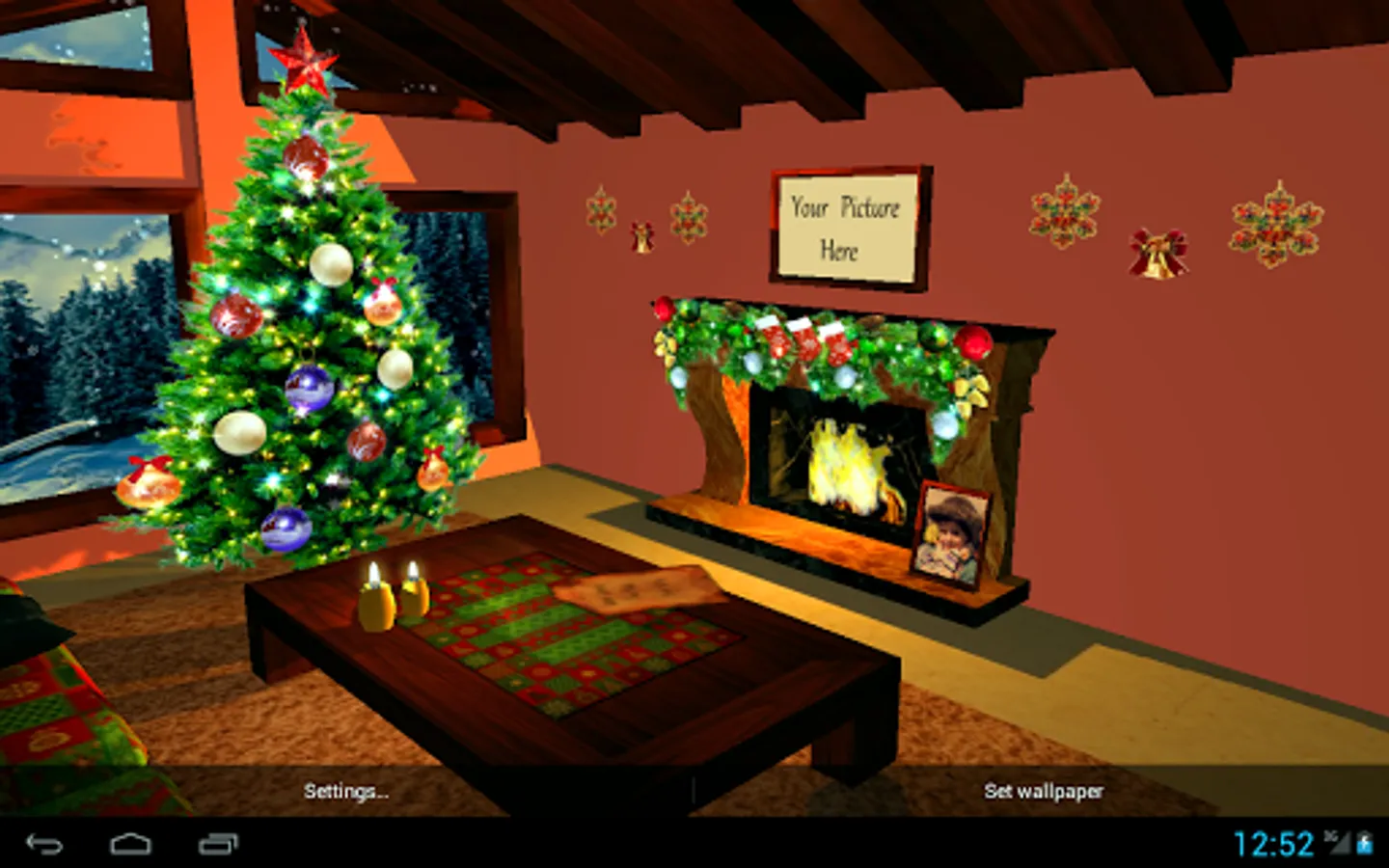 - You can add your photos in two different pictures – on the wall over the christmas fireplace and in front off.