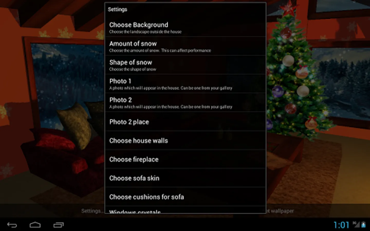 - Customizable decorations: sofas, cushions, walls, fireplace, christmas light effects, snowman.