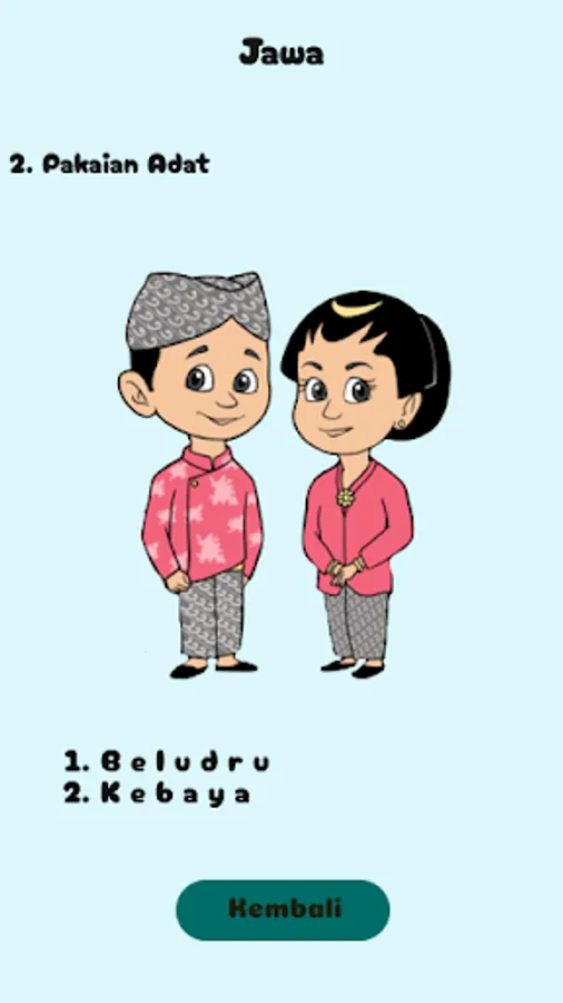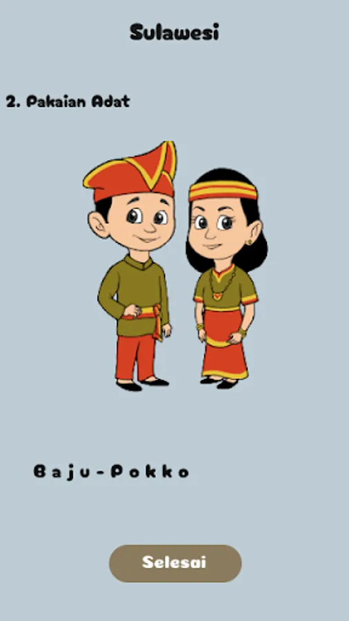 This game is targeted at children aged 6-12 years to introduce children to various cultures in the archipelago from an early age. Game is an educational game that contains pictures, sounds and letters