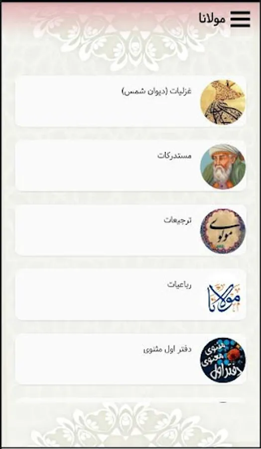 One day Shams enters the Rumi Assembly. There were several books beside Rumi. Shams asks him, "What are these?" Rumi answers, "It is fair to say," Shams says, "and what is Terah with them?" Rumi says sadly, what did you do, Darwish Some of this came from my father. Shams Tabrizi in this case water and pulls the books out of the water without any traces of water left in the books. Rumi wonders, "What is this secret?" Shams replies, "It's a taste that you don't know about" from this time that Mawlana has changed and turns to greed, leaving aside lesson and discussion and serving in Shams Tabrizi's nightstand.