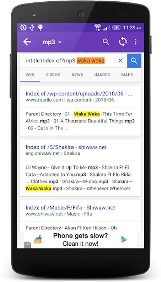 → Search your keyword, the app will filter your search on base of the selected file type. You will get results where you can directly download required files.