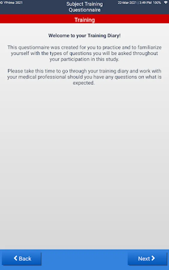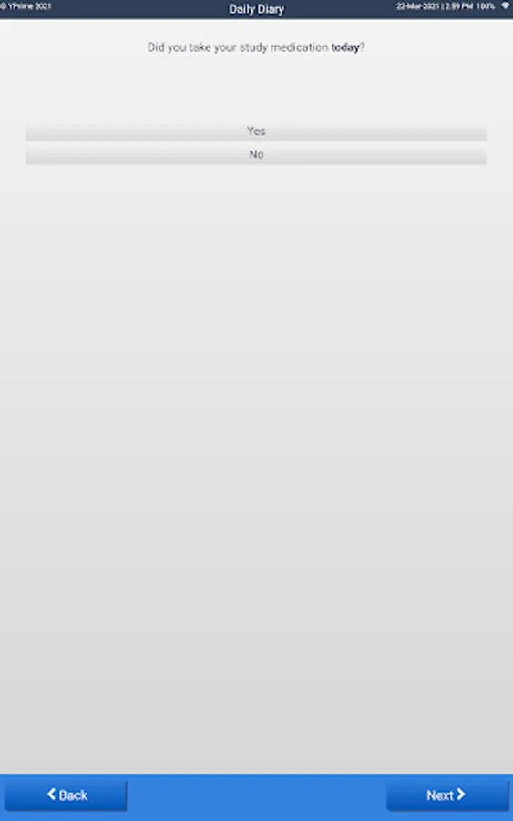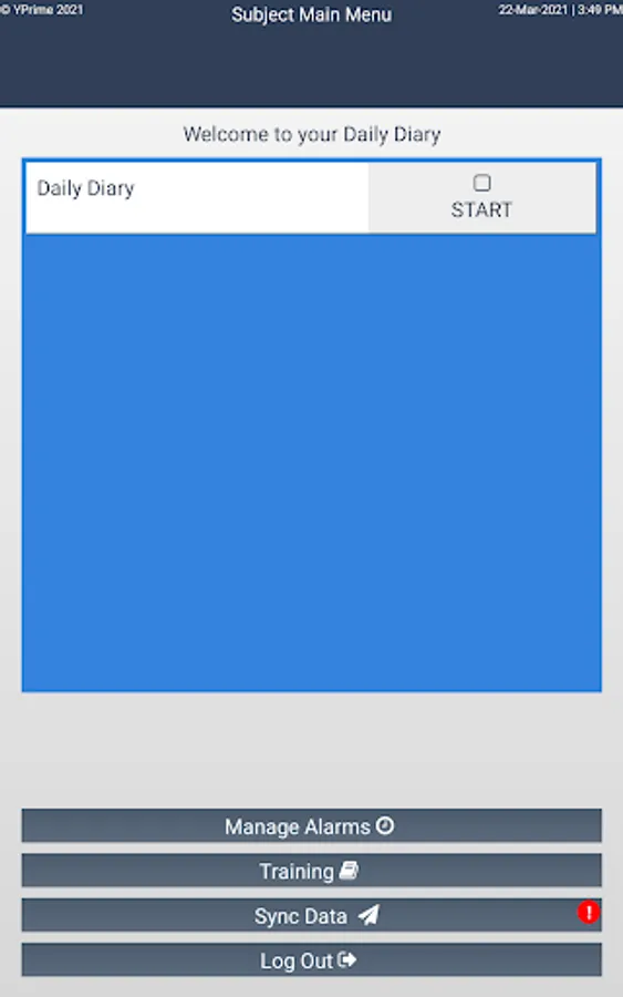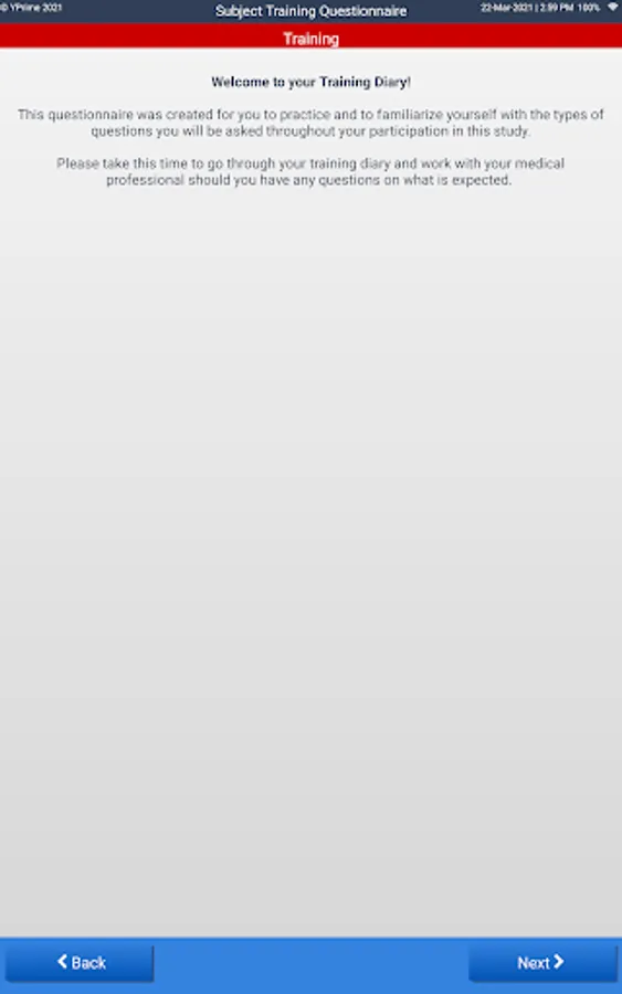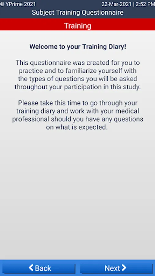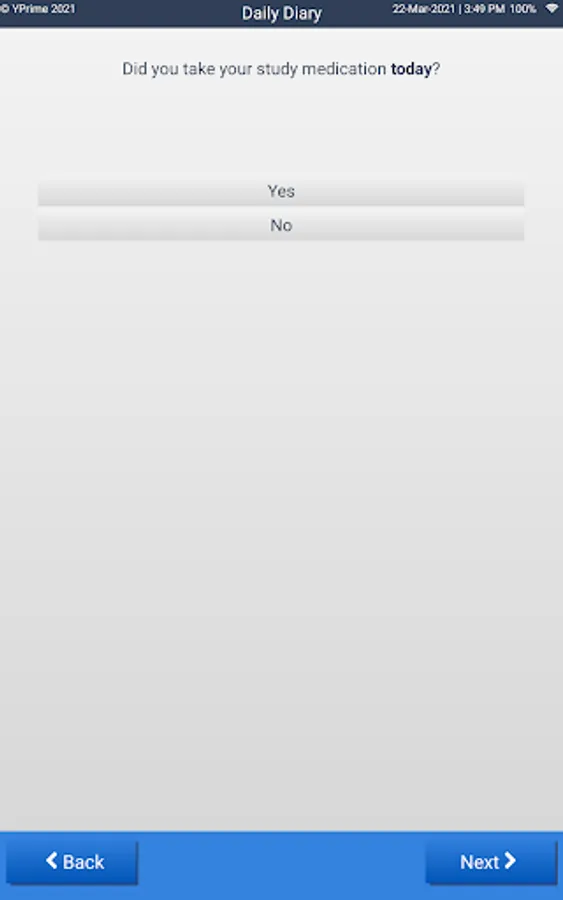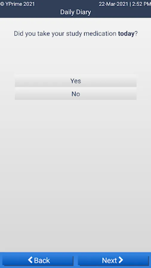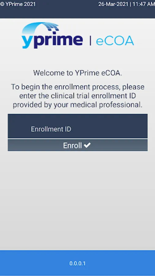 Access study participant questionnaires easily and with minimal day to day disruption by downloading this app on your personal device. Using the enrollment ID provided by your medical professional, create your unique login code and complete your training to begin. The available questionnaires will be specific to your clinical study and the YPrime eCOA application will remind you when the questionnaires need to be completed based off your visit schedule. Use this app to meet clinical study questionnaire completion and compliance requirements.