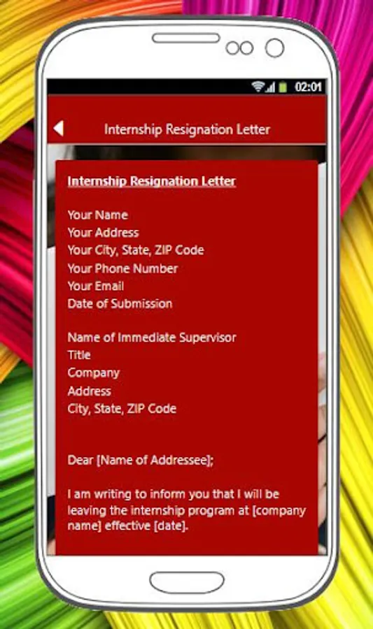 Whatever the circumstances of your departure, the examples in this app, Simple Resignation Letter Samples, can help you craft a polite and appropriate resignation letter. Get ideas on what information to include in your letter, as well as what information to leave out. When writing your own resignation letter, you can use these examples for inspiration. However, be sure to tailor the letter to fit your individual circumstances.