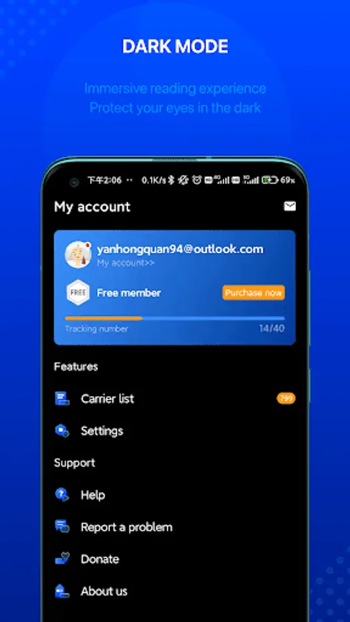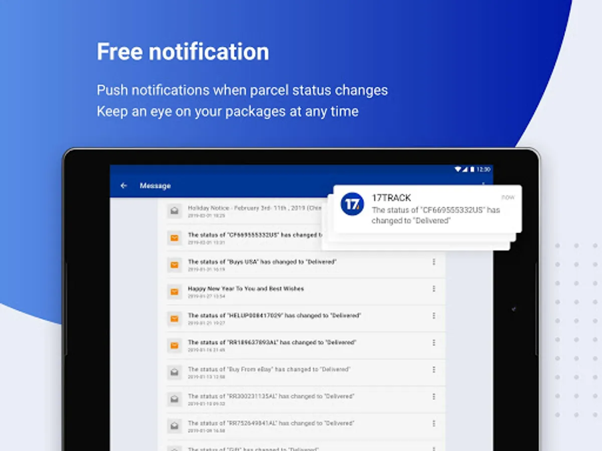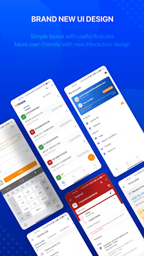 [Data synchronization among different devices] Sign up an account to automatically save your package tracking numbers Synchronize your data among devices: iOS, Android and web via cloud-based service