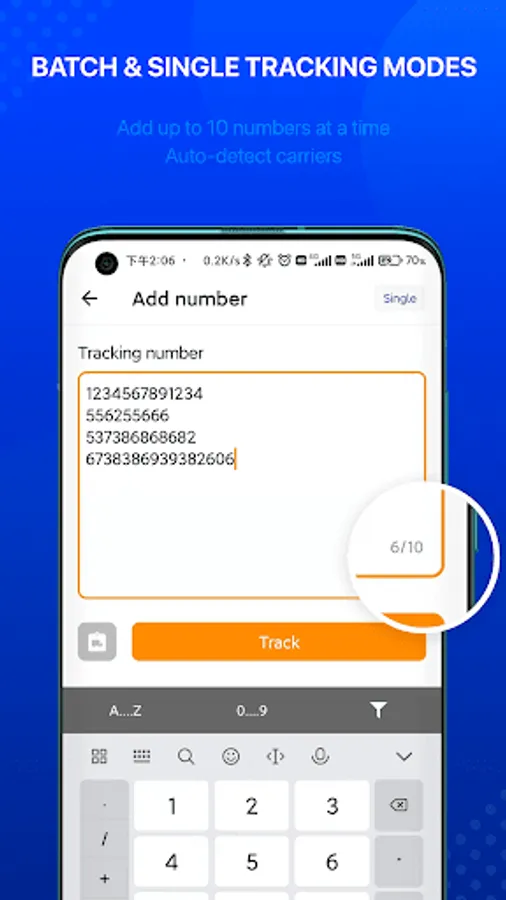 [Efficient and accurate package tracking] Track multiple carriers and batch package numbers Barcode and QR code scanner for package tracking numbers Auto-detect carriers Custom widget for homescreen