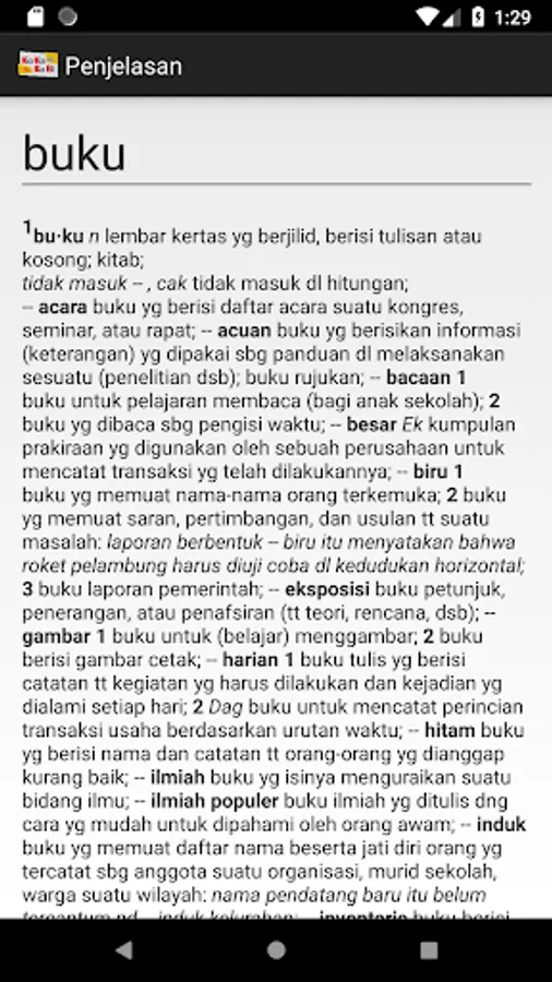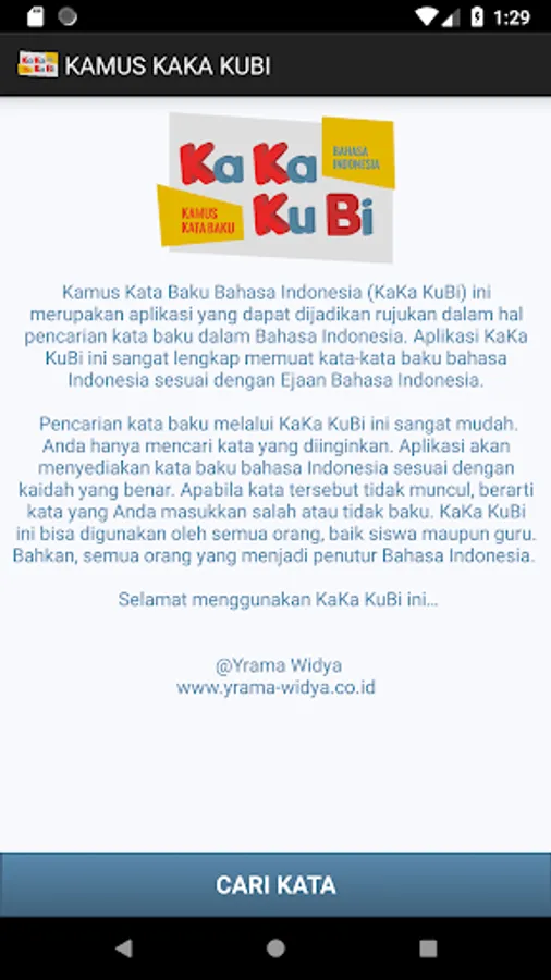 This Indonesian Standard Word Dictionary (KaKa KuBi) is an application that can be used as a reference in terms of searching Indonesian words. This KaKa KuBi application is very complete, containing standard Indonesian words according to Indonesian Spelling.
