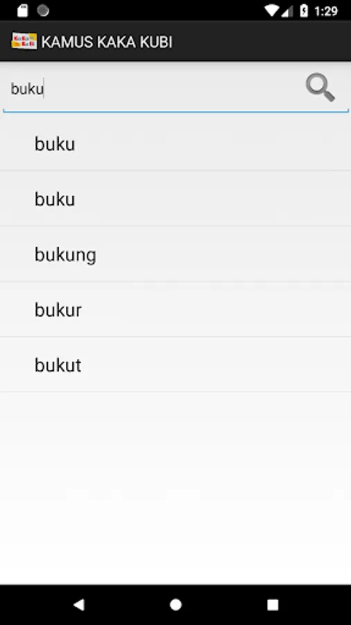 The standard word search through KaBa KuBi is very easy. You only search for the desired word. The application will provide standard Indonesian words according to the correct rules. If the word does not appear, it means that the word you entered is incorrect or not default. This KuBi KaKa can be used by everyone, both students and teachers. In fact, all people who are Indonesian speakers.