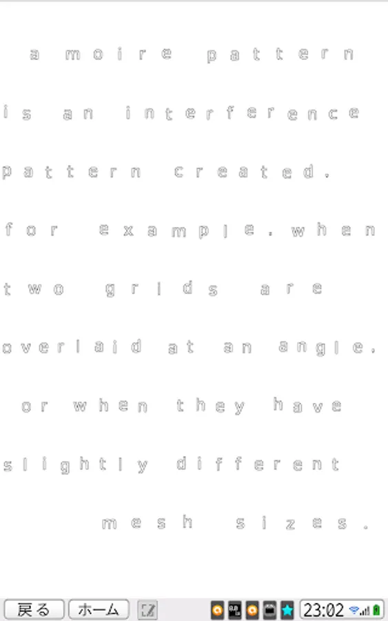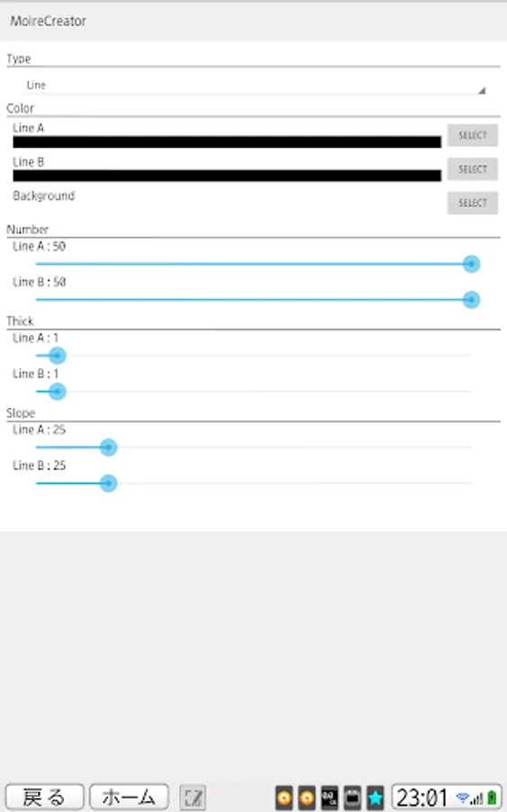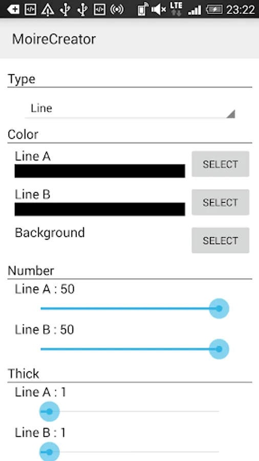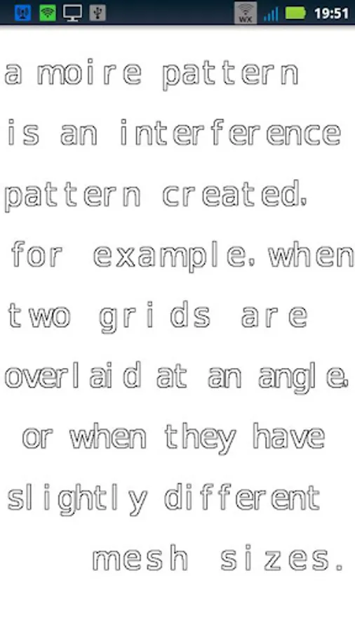 A moire pattern is an interference pattern created, for example, when two grids are overlaid at an angle, or when they have slightly different mesh sizes. You can change color, number, thick, slope of lines and type of line.