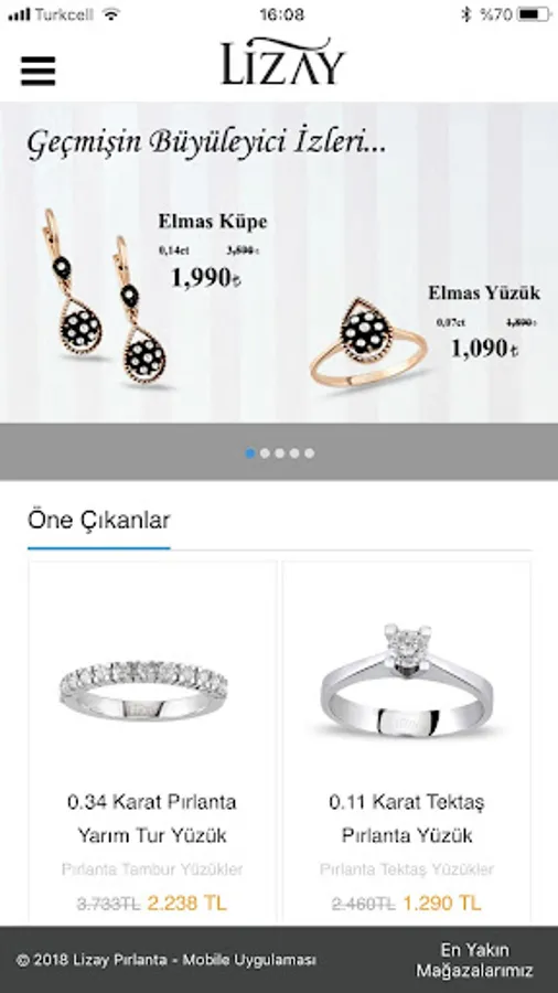 Lizay Diamond has been serving you since 1978 and with the mobile application it offers you can examine all our product groups and models closely and you can see our nearest stores on the map.