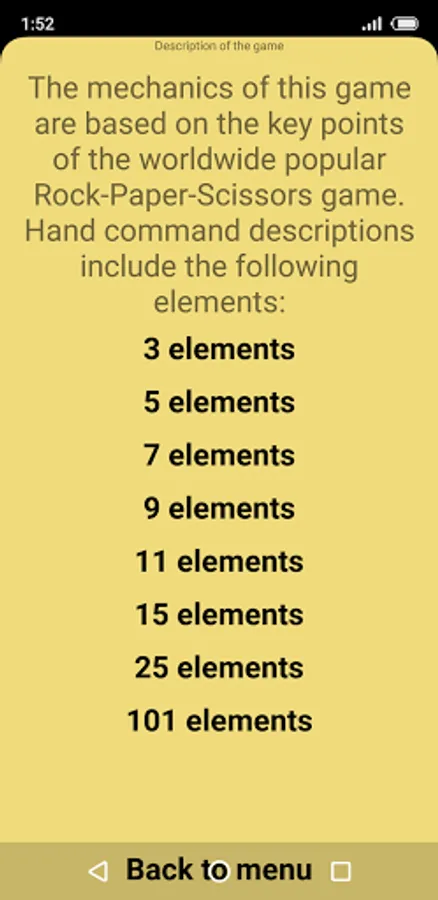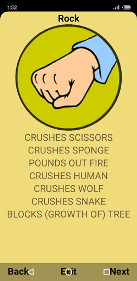 The mechanics of this game are based on the key points of the worldwide popular Rock-Paper-Scissors game. The game includes various variations of the elements and their descriptions. In single player mode, the most legendary opponents await you, try your luck and fight them. Special thanks to David C. Lovelace (dave@fark.com)