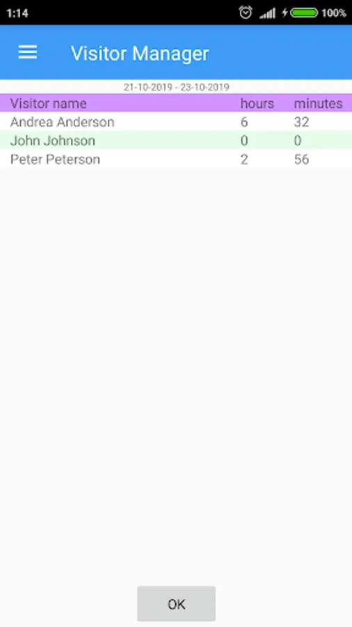 This application is intended for maintaining a log of visits, making a list of visitors, as well as for analyzing the total time spent by a visitor, taking into account a certain period. This is a mini time tracking system. In addition, this application can be used not only for the administration of visits, but also for your own calculation of the time spent on any actions carried out during the day. For example, if you use your daily schedule instead of the list of visitors, then after a day, week, month or year, you can find out the number of hours spent on a particular action.