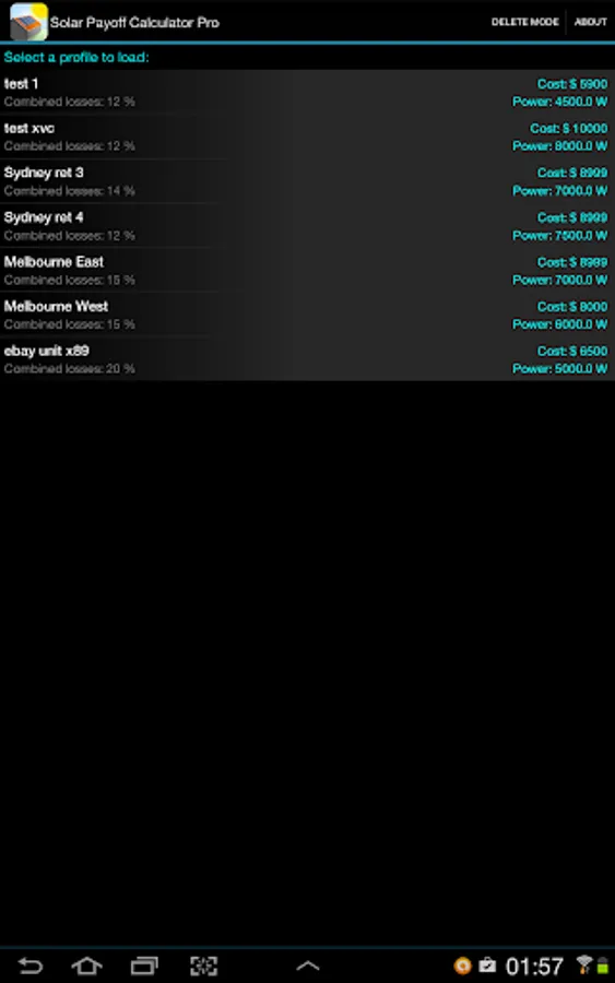 Solar Payoff Calculator was designed to assist buyers with making a decision when buying a solar power system by allowing the buyers to enter researched data about their location, solar system specifics and the price of the system into the calculator, which then makes approximate calculations such as the effective cost per watt, power rating and payoff time. Multiple solar system data can be saved into the database to assist with making comparisons or simply saving the data as you browse the market and inspect different solar power system deals.
