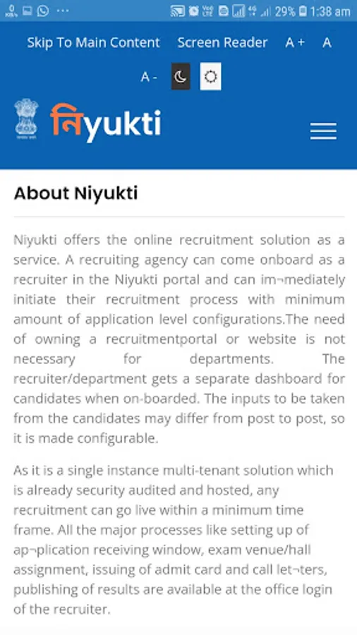 Now the benefit of Niyukti taken by many organizations and the number is growing day by day.The Android Application has designed by Digital Assam Services Center and using hyperlink without any change or modification.