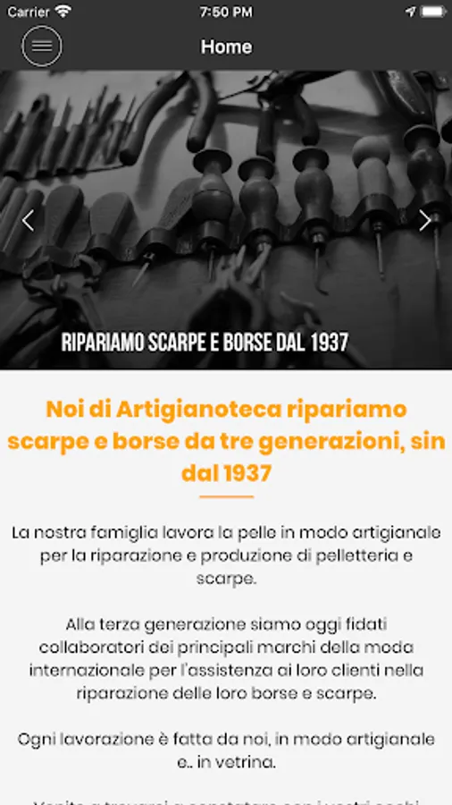 We at Artigianoteca have been repairing shoes and bags for three generations, since 1937.