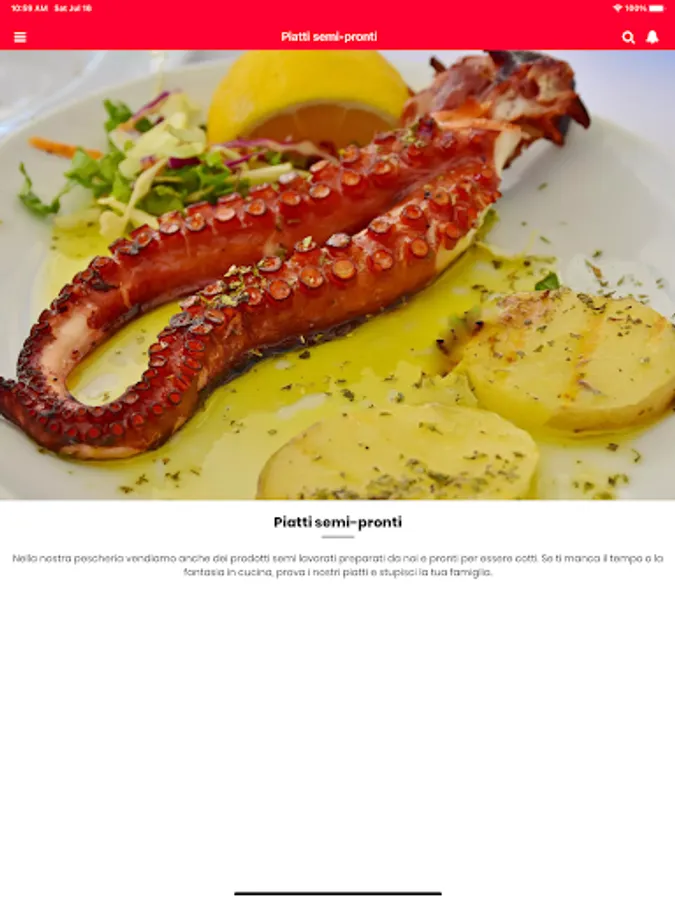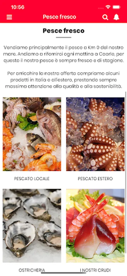 The customer will be able to see the daily counter with their own eyes, will be able to consult the price and grasp its freshness directly from their screen; will have the possibility to contact us by message and to order the preferred goods and choose the delivery method.