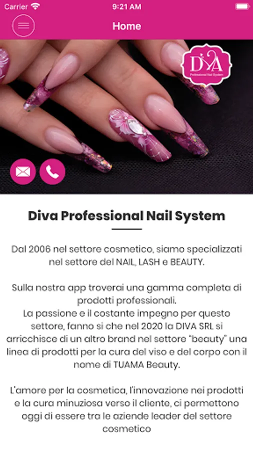 Official app of the brands: DIVA NAILS, LOV PROFESSIONAL LASH and TUAMA BEAUTY