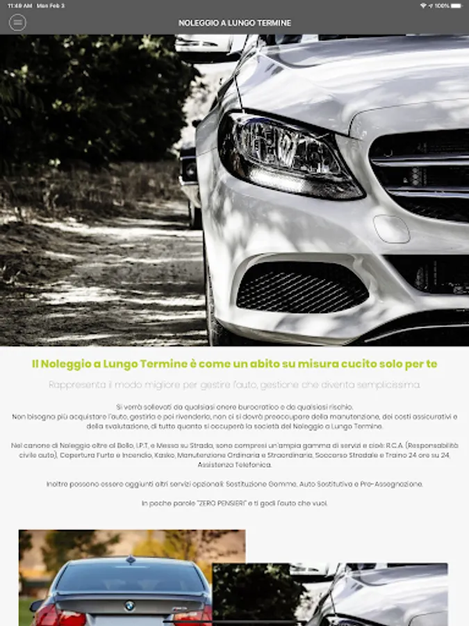 - Long and short term rental of cars, motorcycles and commercial vehicles;