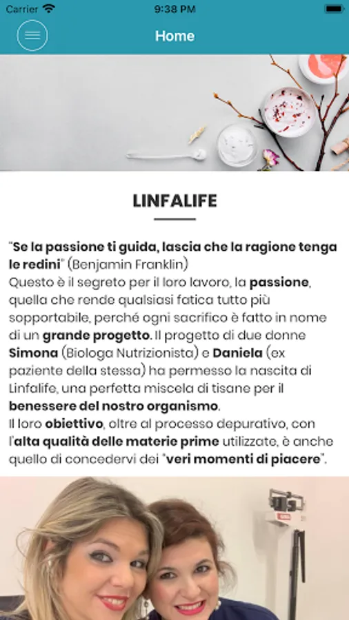 This is the secret to their work, the passion, the one that makes any effort all the more bearable, because every sacrifice is made in the name of a great project. The project of two women Simona (Nutritionist Biologist) and Daniela (former patient of the same) has allowed the birth of Linfalife, a perfect blend of herbal teas for the well-being of our body.
