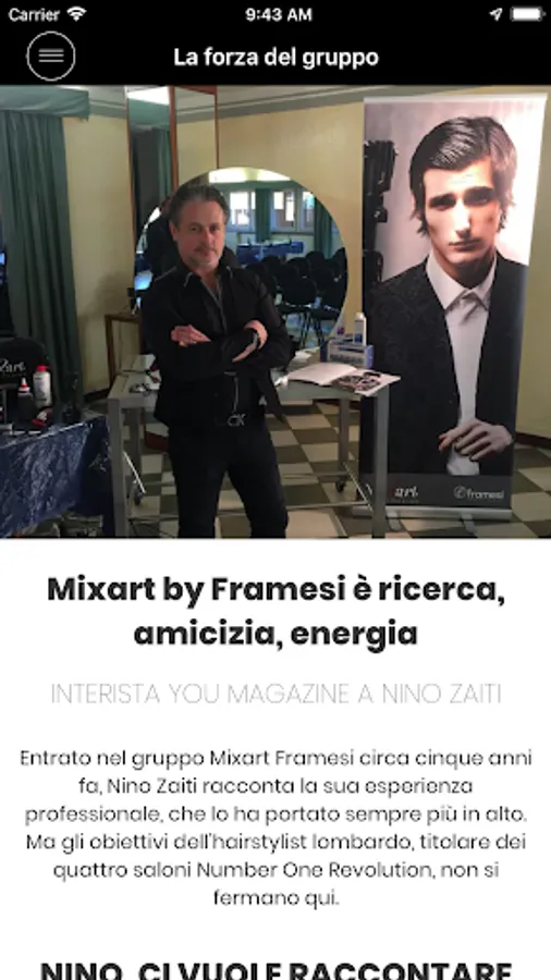 He began his activity in 1989 with N1 and then created the Number One Revolution Parrucchieri in 2009 with Locate Triulzi, and then in 2010 opened the Vidigulfo headquarters which will become the official headquarters. In 2017 the headquarters of Melegnano opens and in 2018 that of Scalo Milano, which in addition to the hairdressing service deals with Aesthetics and solarium.