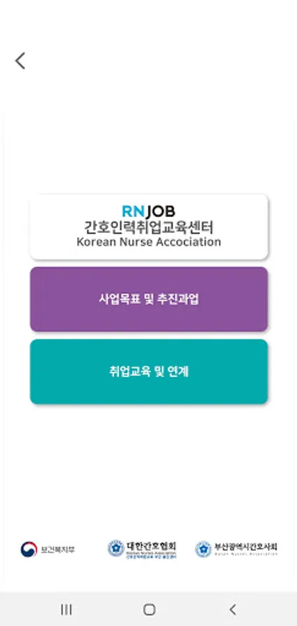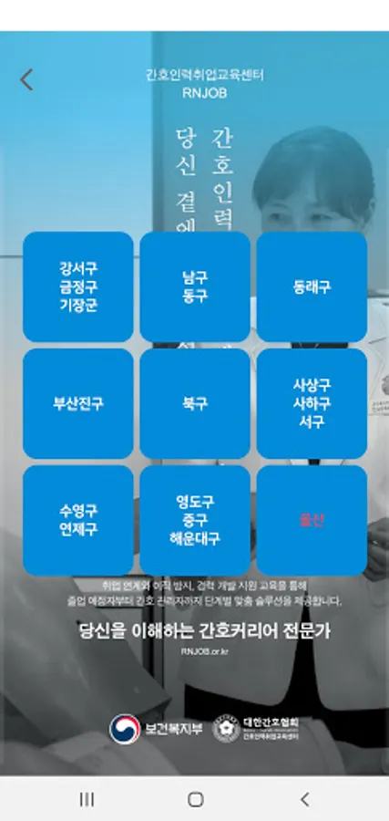 Nursing Personnel Employment Training Center information, information on a list of all hospitals in Busan and Ulsan, and
