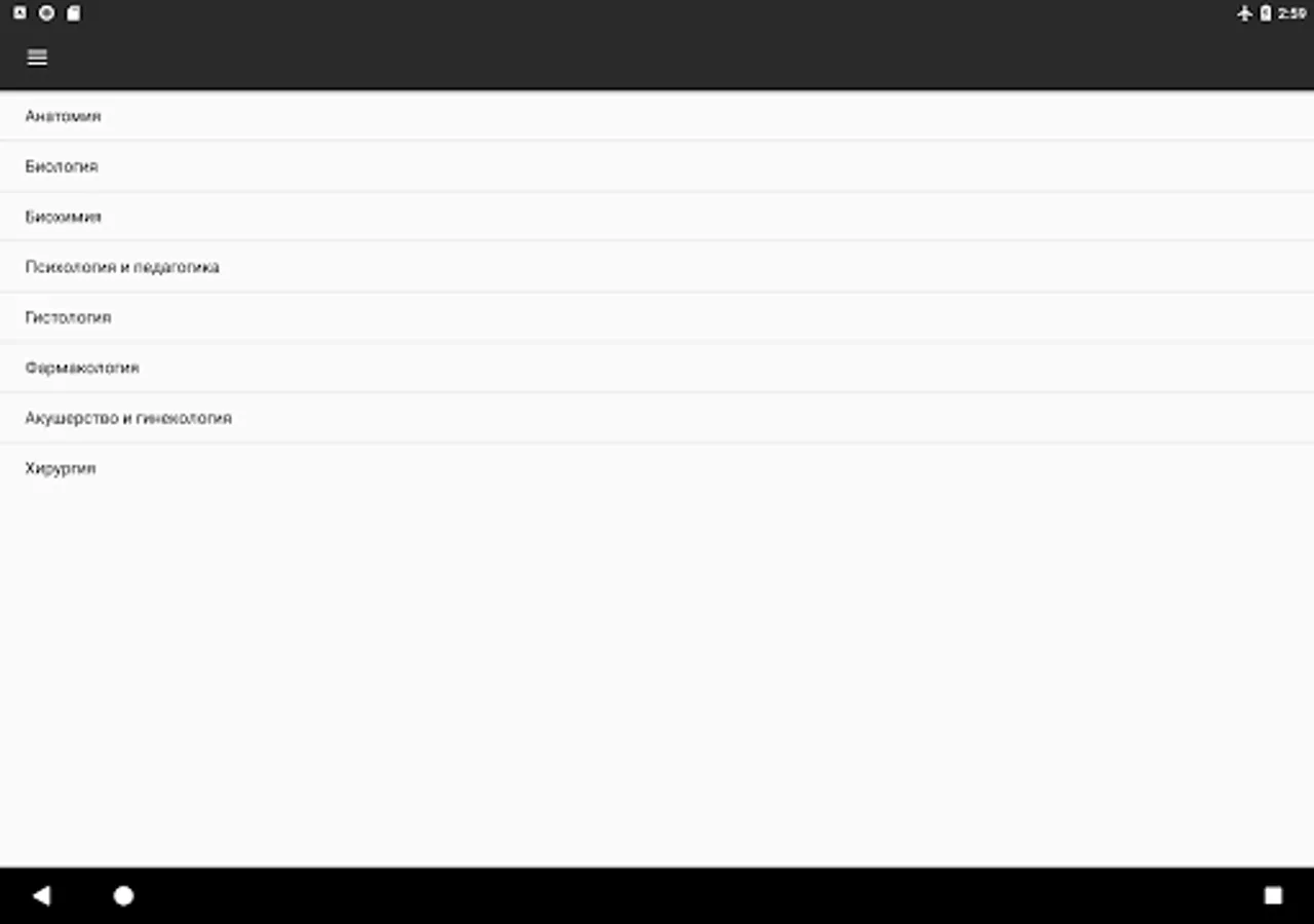 Includes tests for: Anatomy, Biology (Cytology, Genetics, ontogeny, Protozoology, Helminthology, arachnoentomology, Phylogeny, Evolutionary theory, Human evolution), biochemistry, psychology and pedagogy, histology, pharmacology, obstetrics and gynecology, surgery.