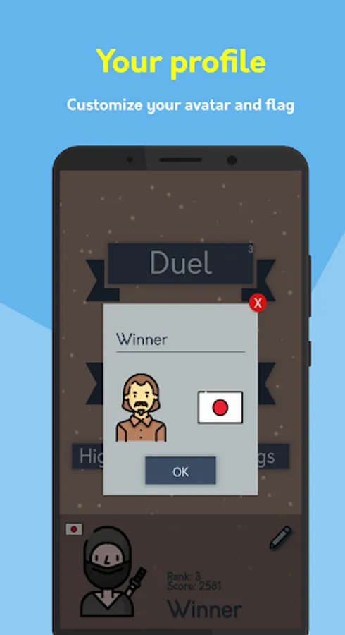 ★ Customize your user PROFILE: choose your favorite avatar, flag, name!