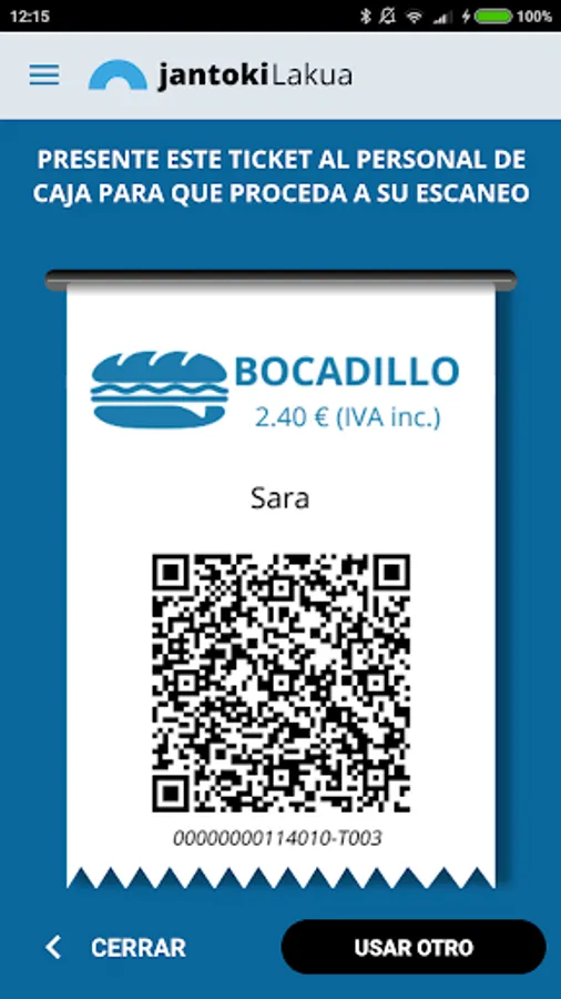Application users / as dining Lakua Basque Government to purchase ticket through the Payment Gateway of the Basque Government and exchanged for menus in that room.