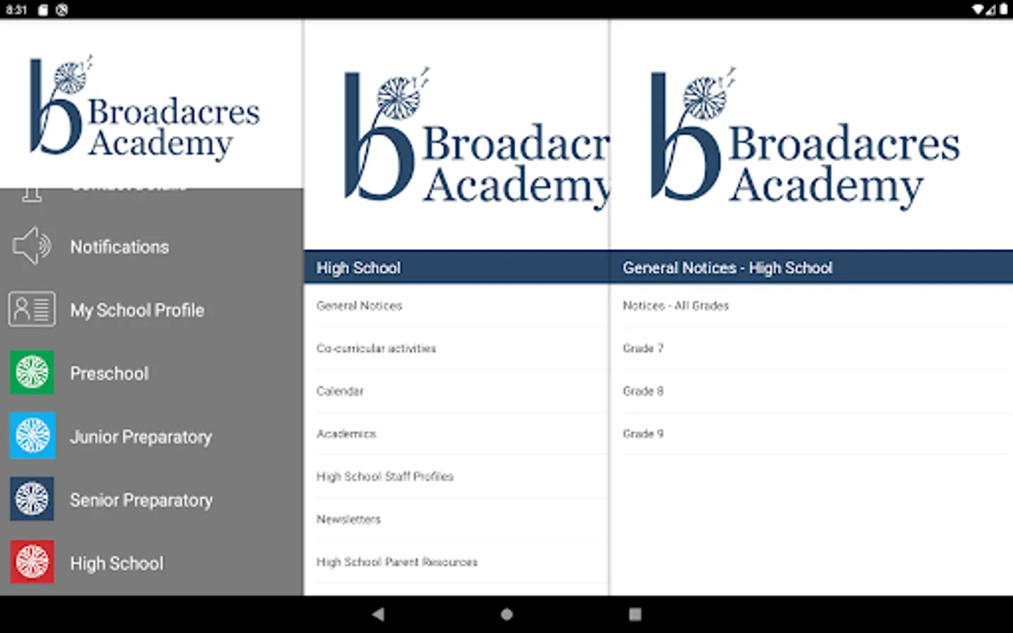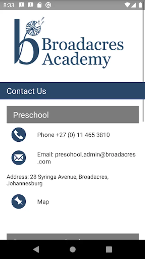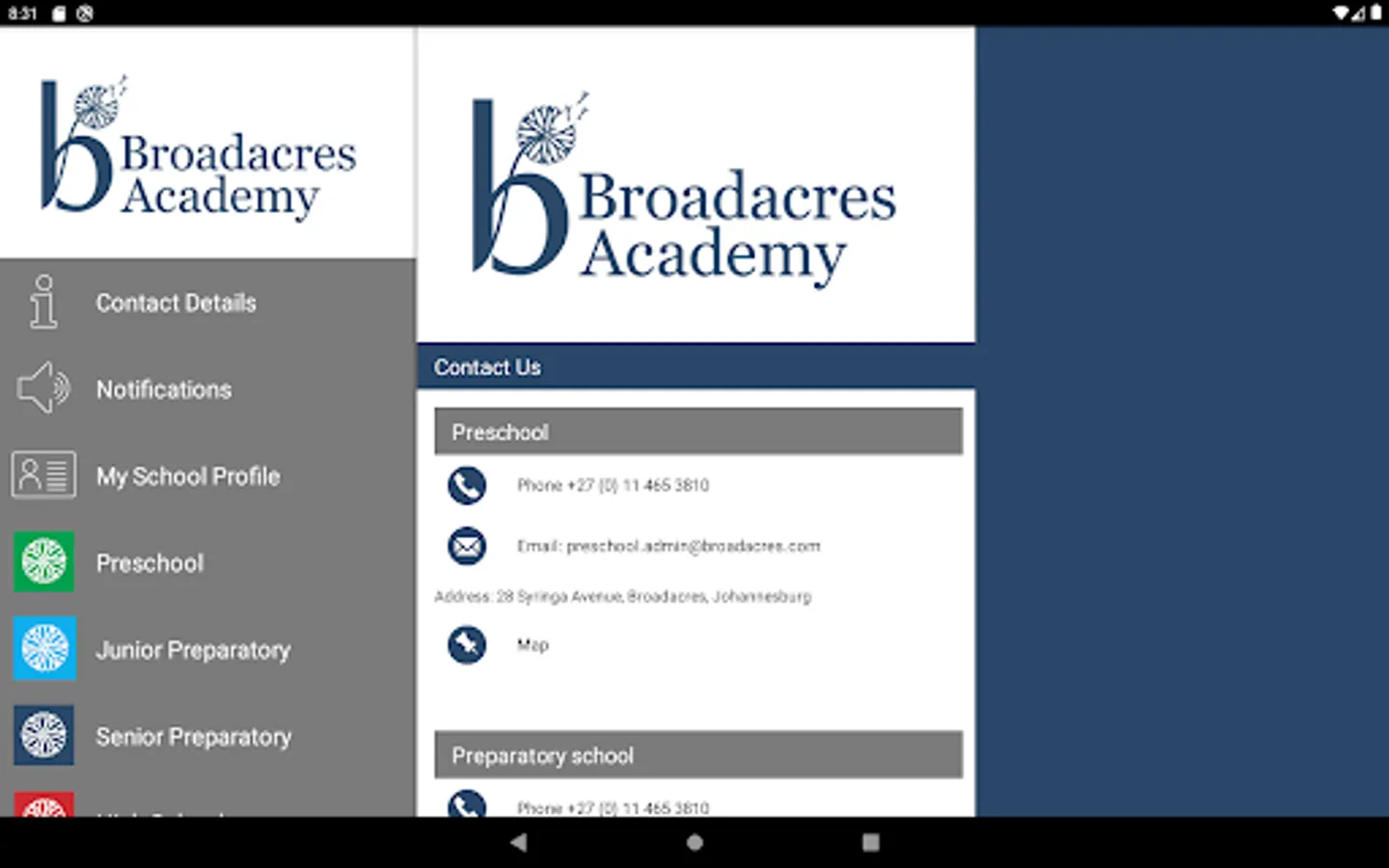 The Broadacres Academy App contains all the information that our community needs to know on a daily basis. News, calendars, staff email addresses, extra-mural activities, contact information and much more.