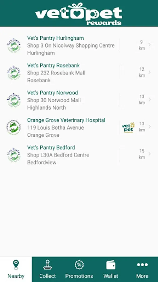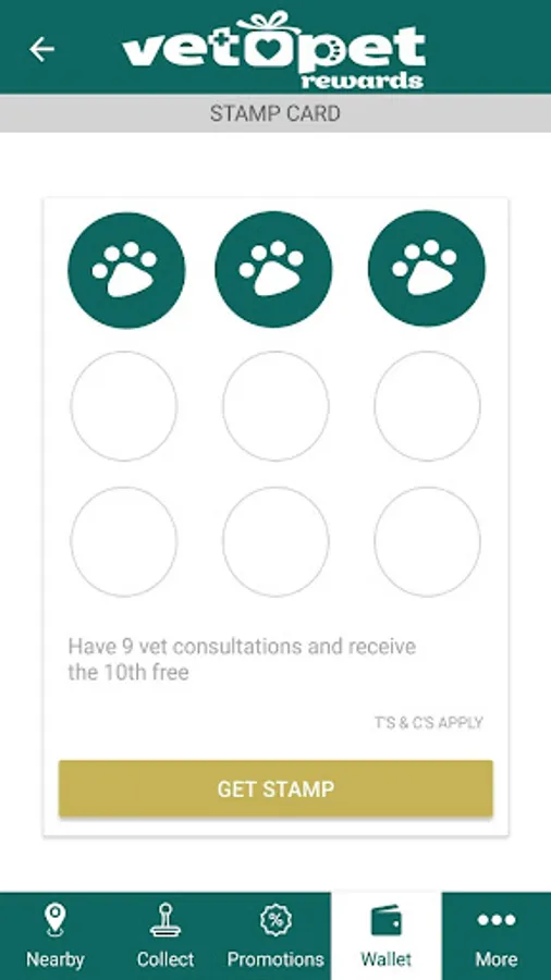 The VetPet Rewards App allows you to find your nearest veterinary clinic and participate in collecting stamps for your pet supply purchases on various promotions and offers at these clinics.