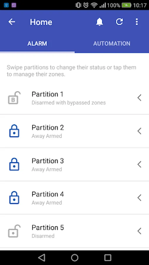 - Full arm, stay arm, and disarm abilities as set up by the installer