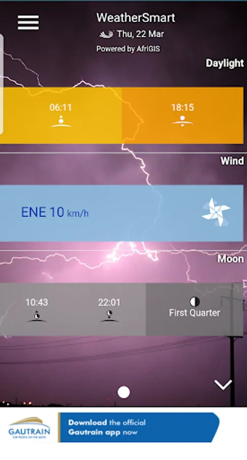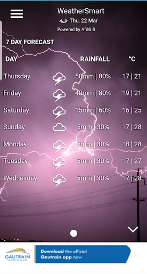 WeatherSmart, from the South African Weather Service (SAWS), provides you with severe weather warnings and other handy weather information for your immediate surroundings and other areas.