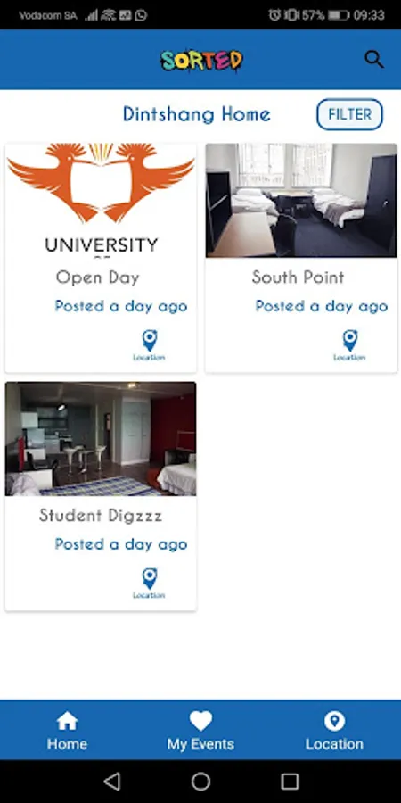 Dintshang directly translates to 'Where's the vibe at', which is exactly what you can find out when using this tool in the Sorted App. Dintshang is essentially a bulletin board that allows you to check out which events, activities, and meet-ups are happening near them. The events that are displayed to you will be based on your user profile, you will only see events relevant to the communities you belong to. The system works with user-targeting to notify users based on their location, interests and profession; ensuring that they keep a beat on the most important events unfolding around them, and not with ones that don't concern them.