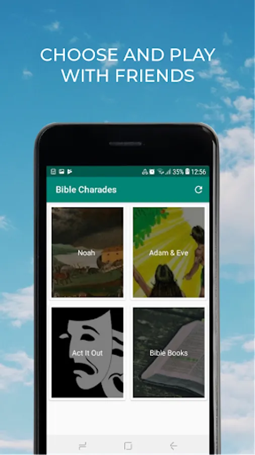 Bible Charades is a bible version of the game charades. It allows families, friends , church members to learn the bible in a fun way and quiz each other's knowledge about the bible.