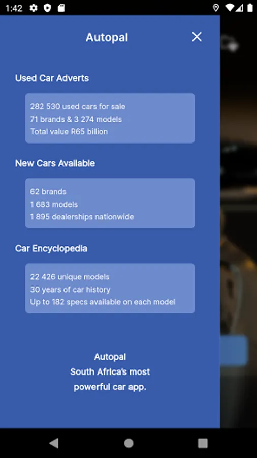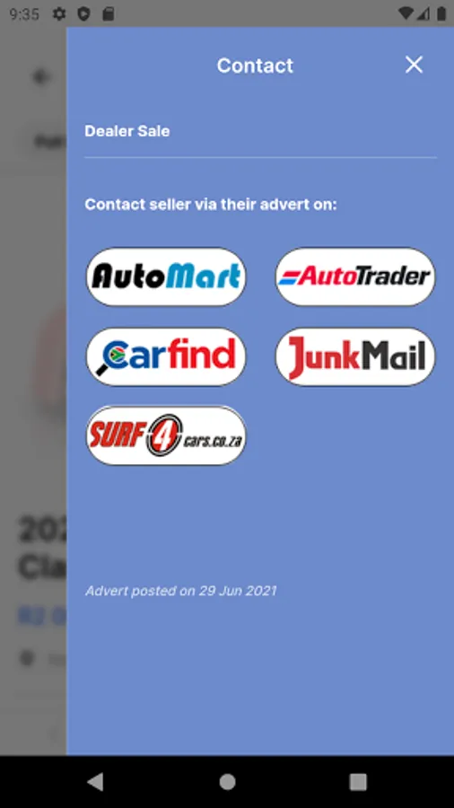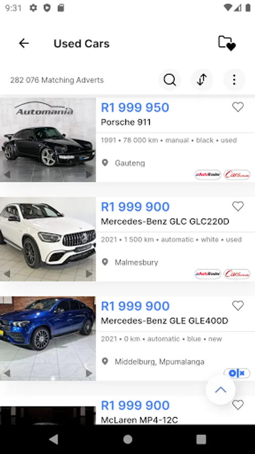 This application gives you one convenient place to see all available used cars for sale in South Africa and where to buy them with 1 800+ dealers, 22 000+ models and over 200 000 used car adverts consolidated from Autotrader, Automart, Cars, Carfind, Carmag, Gumtree, Junkmail, Olx, Surf4cars and, WeBuyCars.