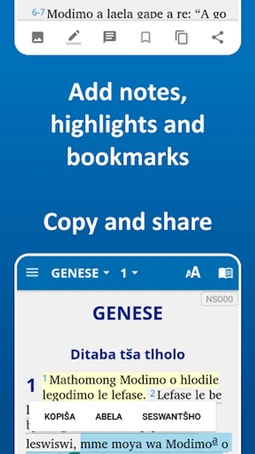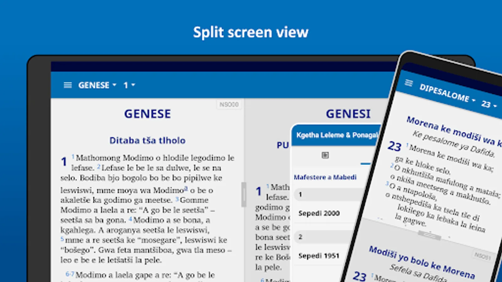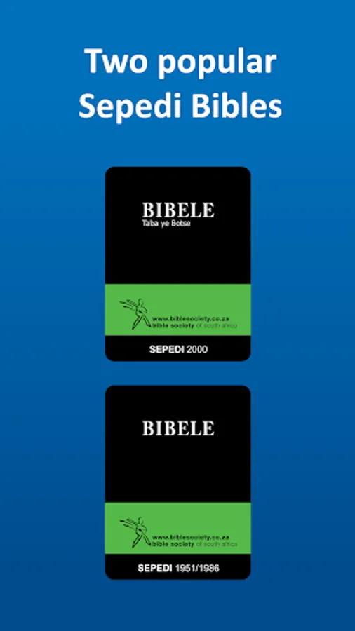 Download free Sepedi Bibles to read offline. You can compare different translations, customise your Bible reading experience and copy or share Bible verses. Compact/light weight – (small file size).