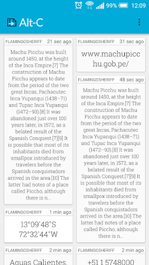 Configure Alt-C to open specific types of text in various applications. Open URLs in your Web Browser, Email addresses in your email app, GPS co-ordinates in your Maps app, Phone Numbers in the Dialer and Text in your favourite note taking application. Configure your Alt-C Auto Launch experience under Settings!