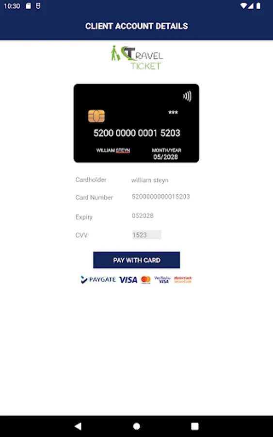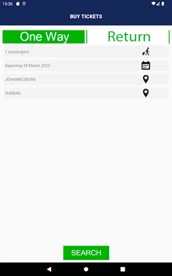 TravelTicket is an app that enables the user to easily book a bus ticket and reserve their seat from the comfort of their home or whilst on the go. TravelTicket check for availability on various Operators by using the date of travel chosen. All available Operators are displayed with pricing and time, giving the user a wide variety to choose from to suit their needs. Payment is easy and secure. When the payment is successful a seat is booked, ensuring the user has a seat on the Operators bus which was selected.