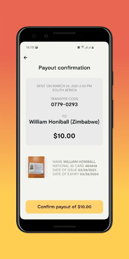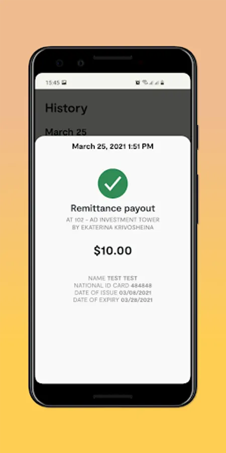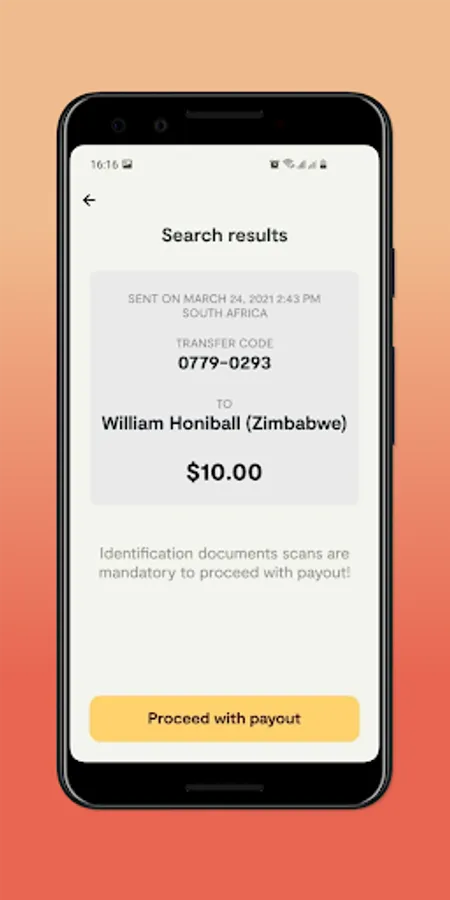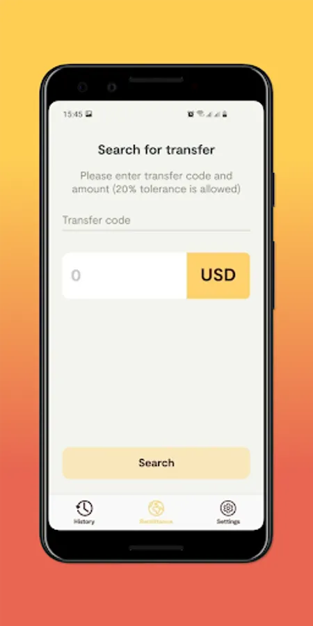 Mobile POS application for cashier employees for providing service to receive remittance payout in cash.