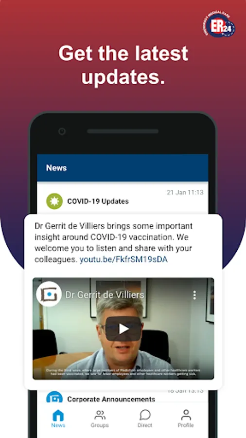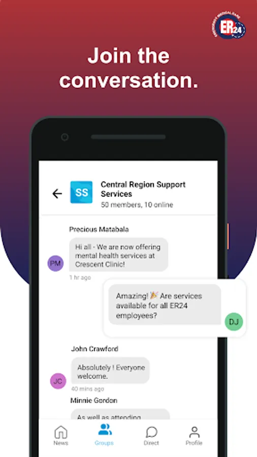 ER24 MyChat is a free, secure communication and collaboration tool that ER24 staff can utilise to send messages, share files and receive important updates within the company and their departments.