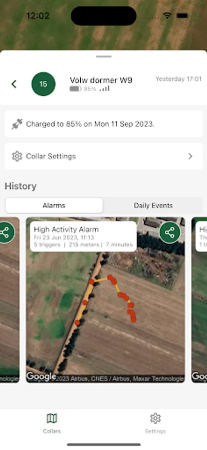 The FarmRanger app works along with FarmRanger Livestock Security Collars to generate alarms on the livestock farmer's mobile phone in the event of theft or predator attacks. The GPS position and movement of the animals are shown on a map, and the farmer can act quickly to prevent damage.